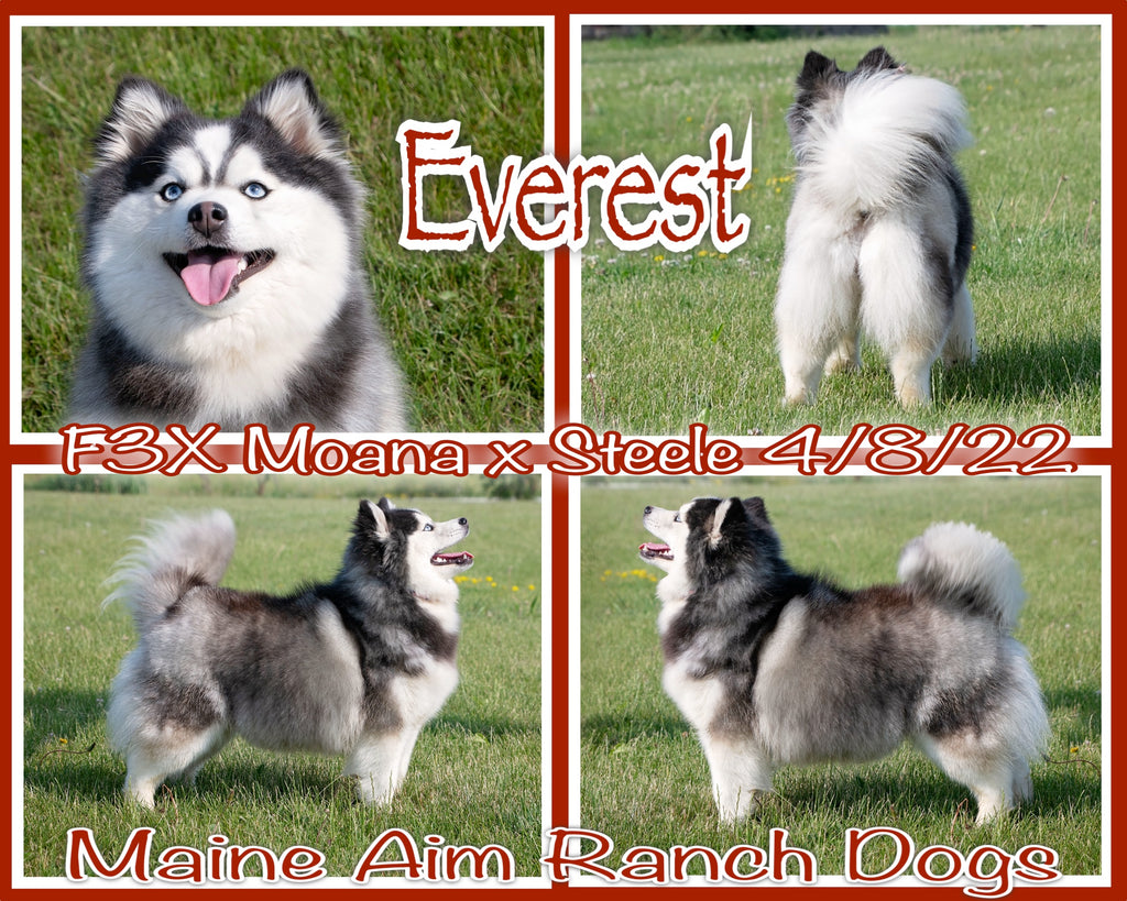 Check out this adorable little pomsky girl Everest bone 4/8/22 she comes out of Moana & Steele and she is gorgeous weighing in at 18lbs and we love everything about this girl. She a beautiful super soft coat and loves everyone and even cats. She walks great on a leash and has had some obedience training and has been shown in pomsky shows. She is not yet spayed we may breeder her one more time in 2026 but if you would like to claim her for your family after her next litter let us know.