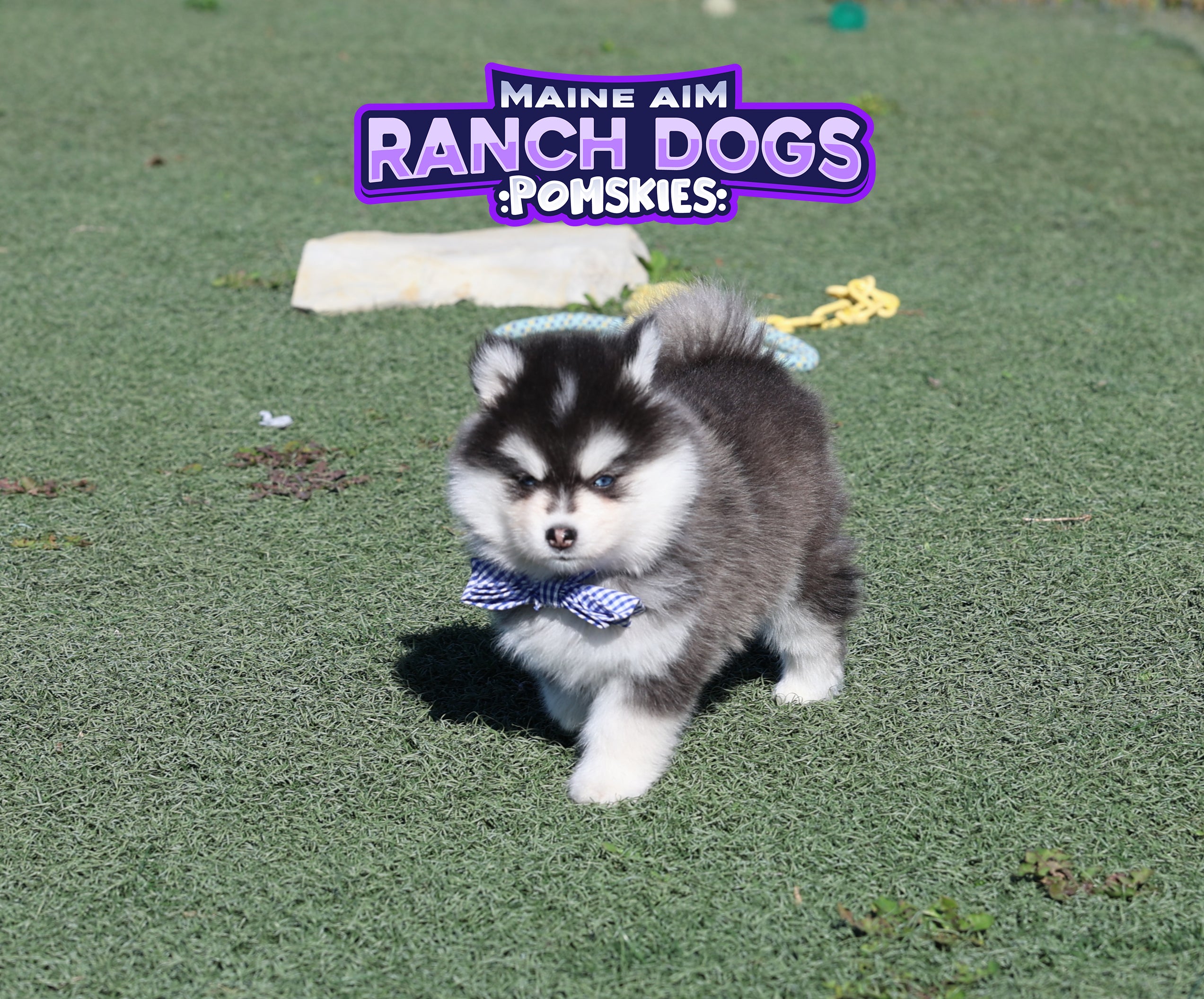 Miss Alaska is so beautiful just like her moma Becky she is made so correctly and fits the pomsky standards very well.  Miss Alaska won Reserve Mini Female behind her sister Sierra which won Best of show at Pomsky Showdown at 5 months old in 2023. Following in their mother Becky's foot steps, Becky won Pomskyfest in 2018 at the age of 5 months old.  Alaska's dad Icon also won Best of Show Dog at Pomsky Showdown in 2023.  Alaska is weighing in at 25lbs and we have paired her with smaller males to provide a range from Micros to Mini pomskies is what we are planning on seeing her produce.  Miss Alaska is full sisters to Sierra and they are like two peas in a pod!  We are excited to see the babies these two girls produce.