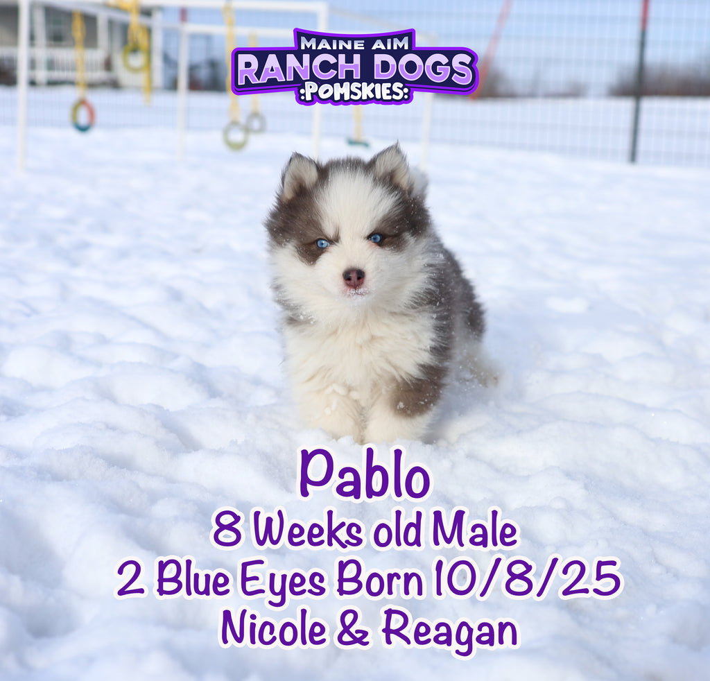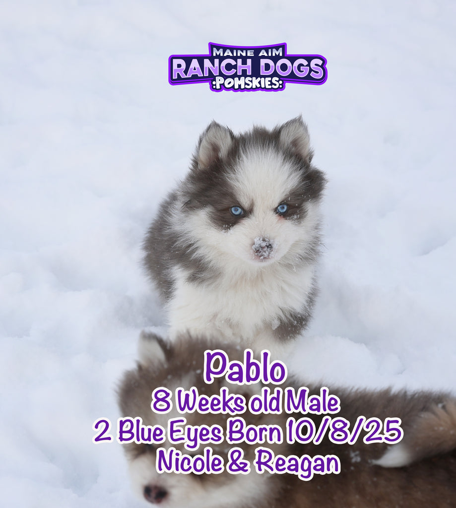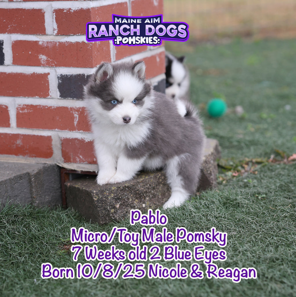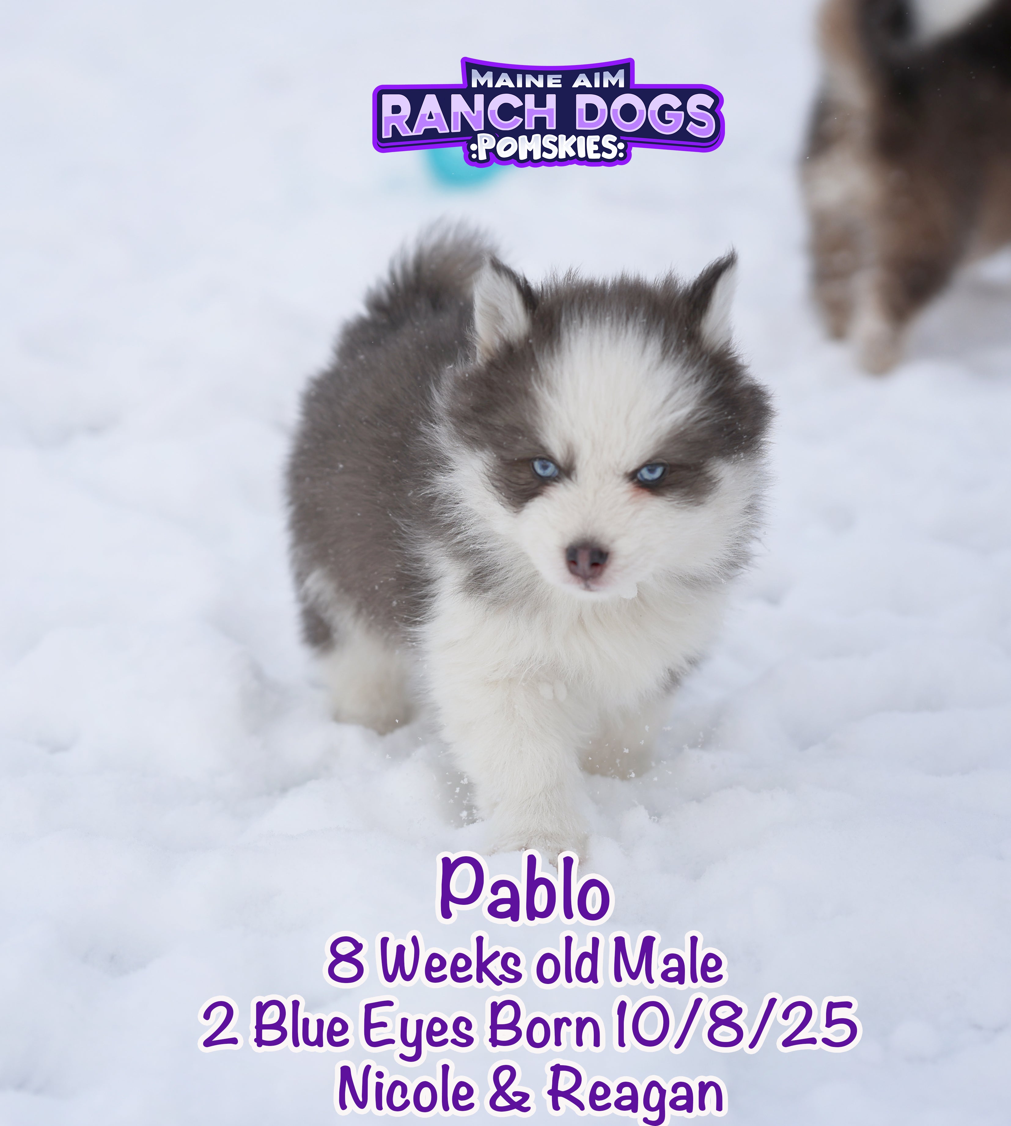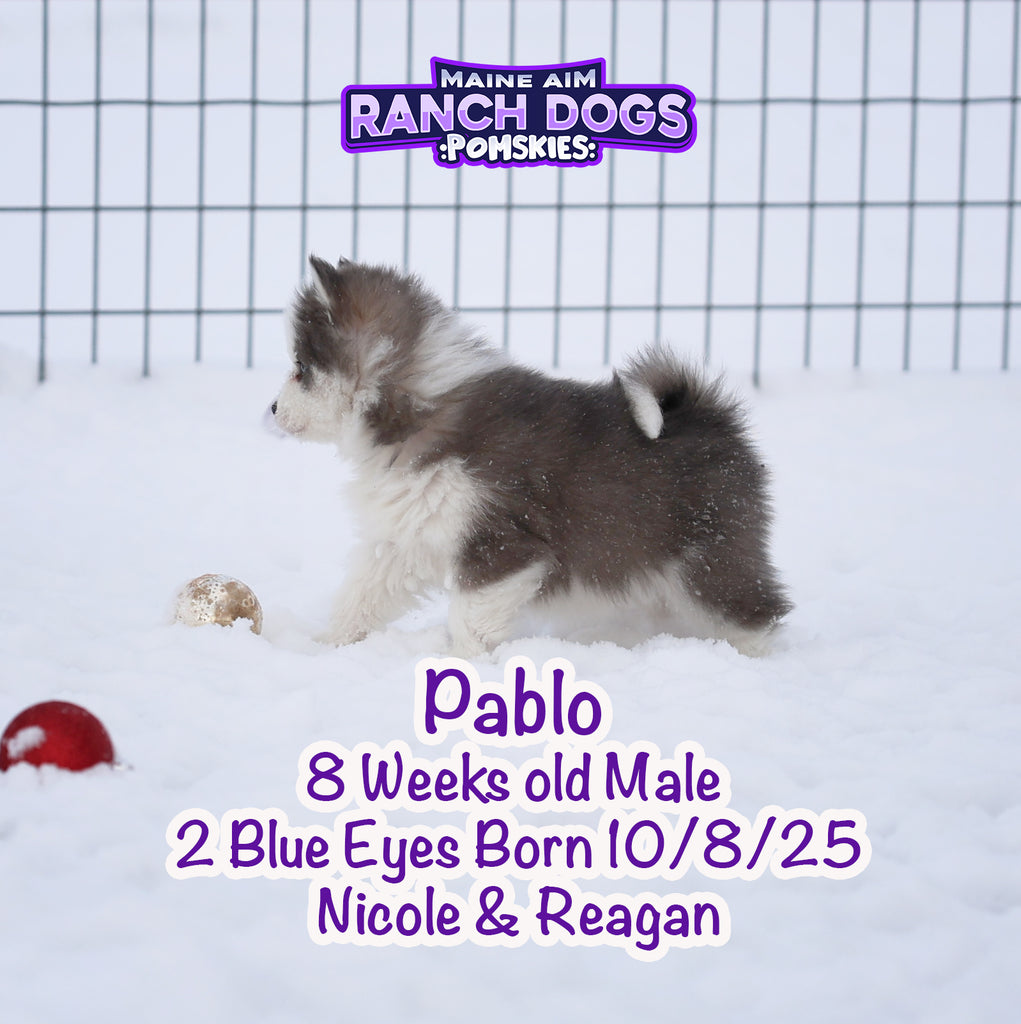Pablo Blue & White F5 Male Pomsky out of Nicole & Reagan born 10/8/25 ready for new homes 12/3/2025