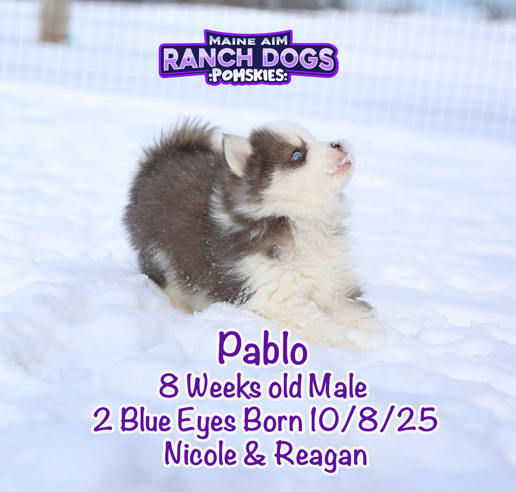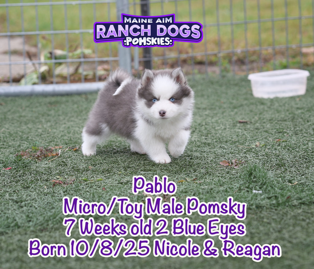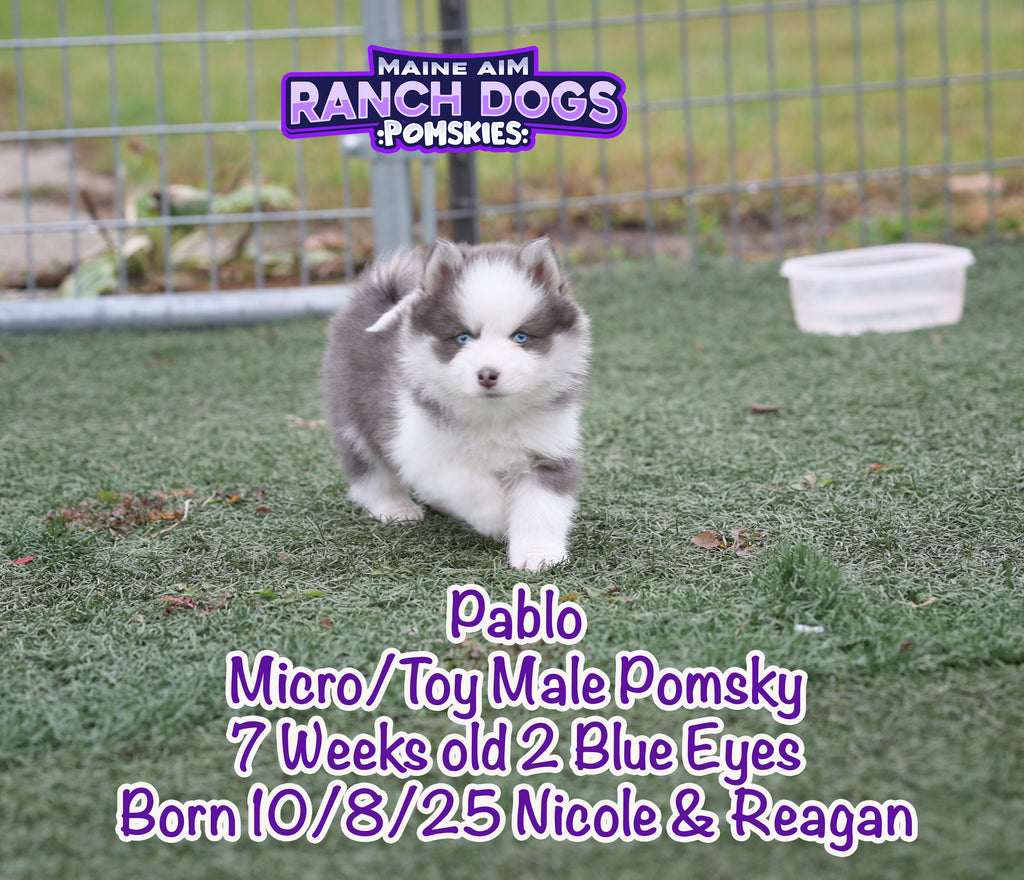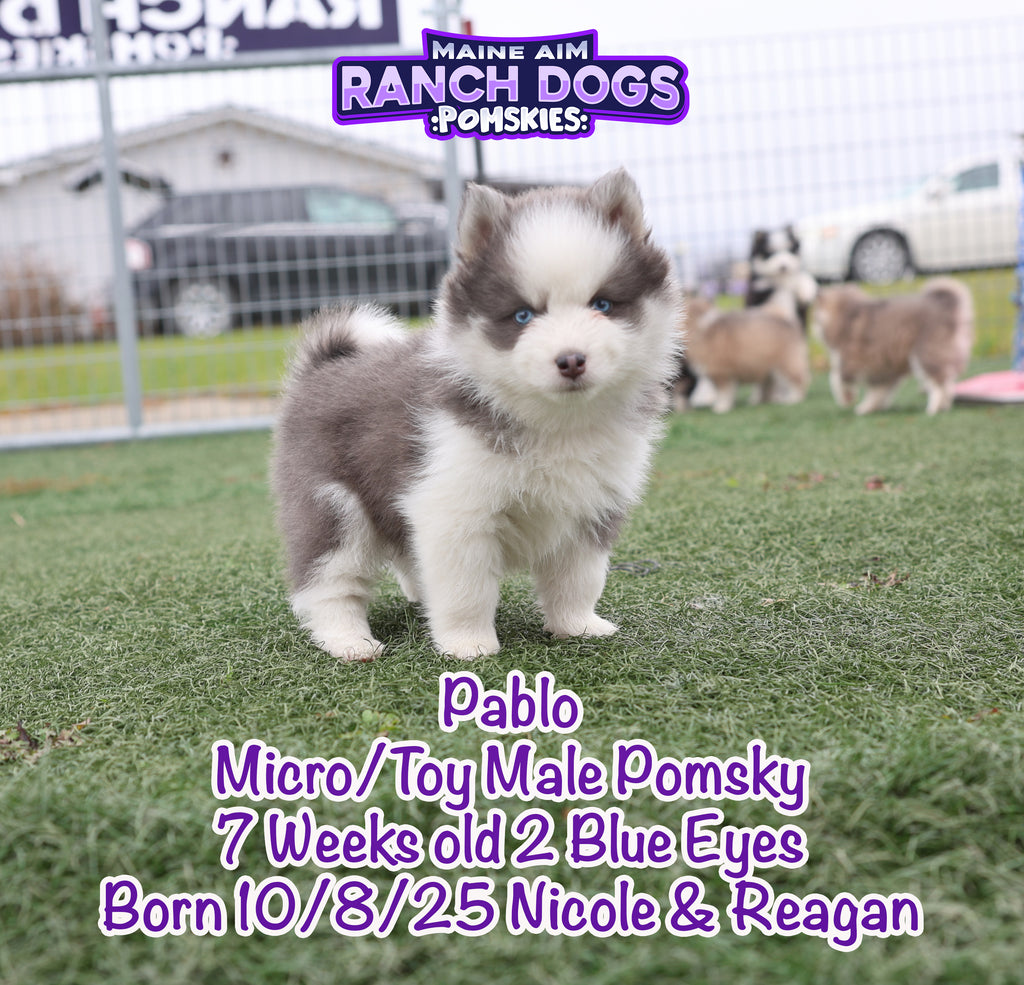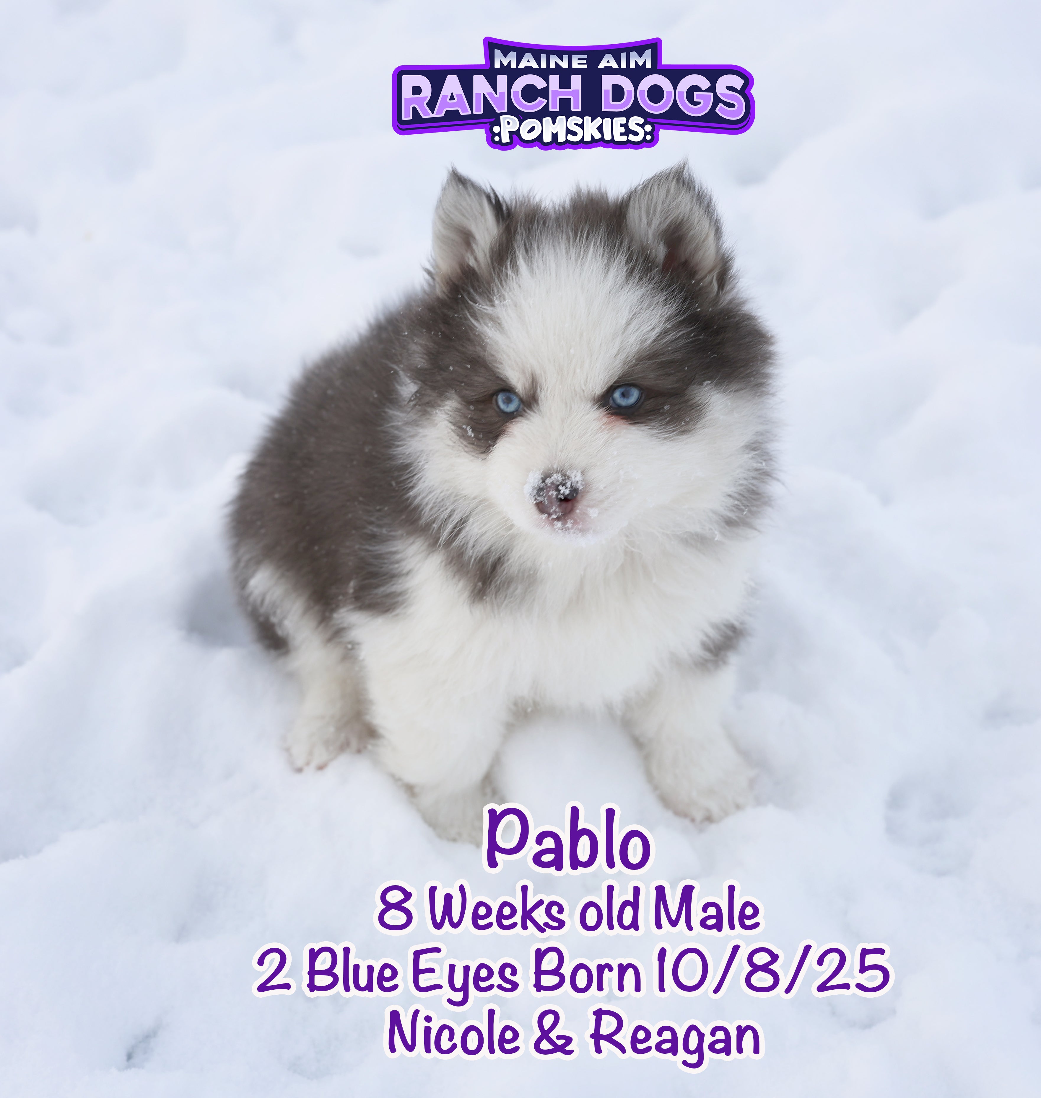 Pablo Blue & White F5 Male Pomsky out of Nicole & Reagan born 10/8/25 ready for new homes 12/3/2025