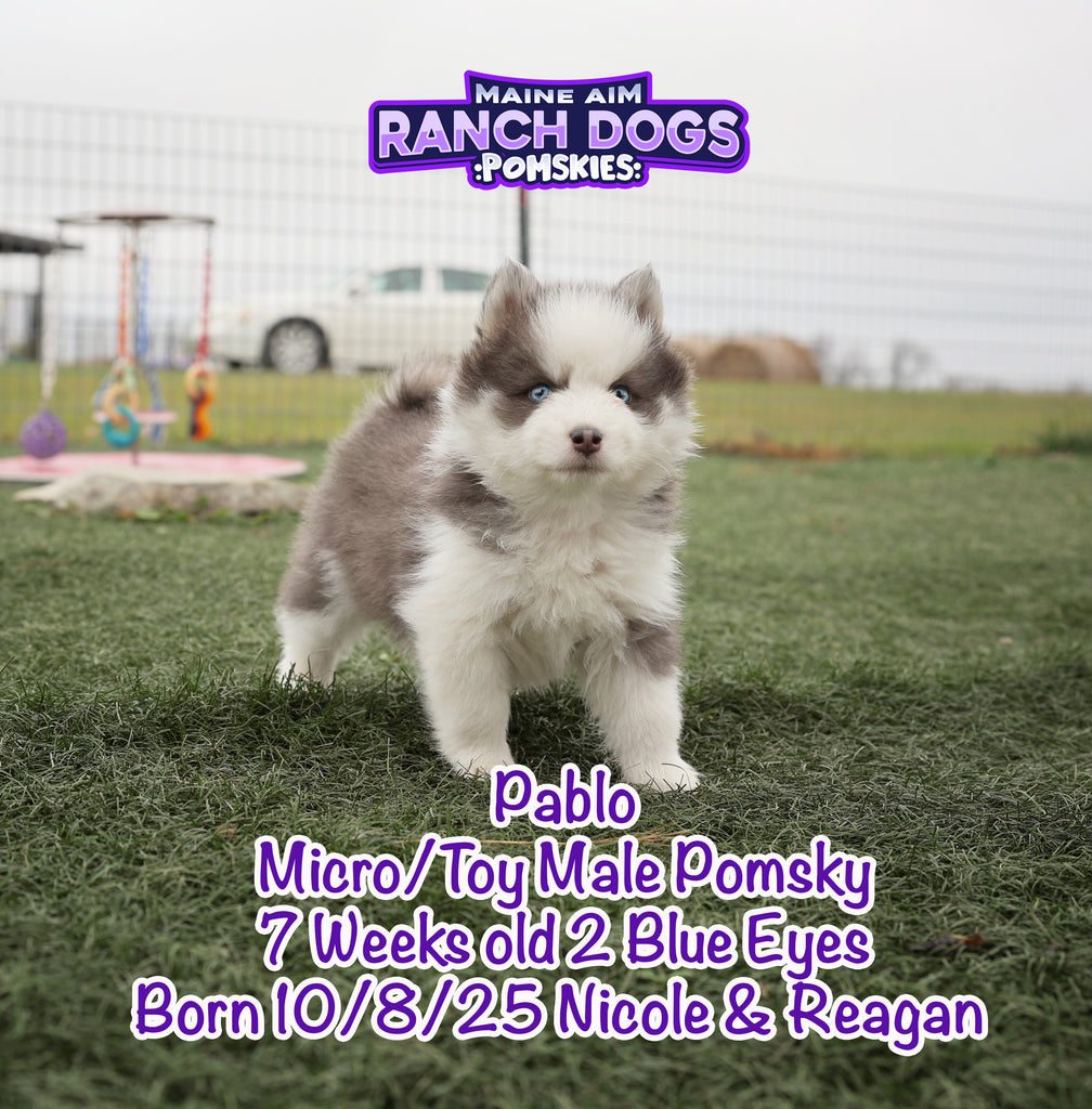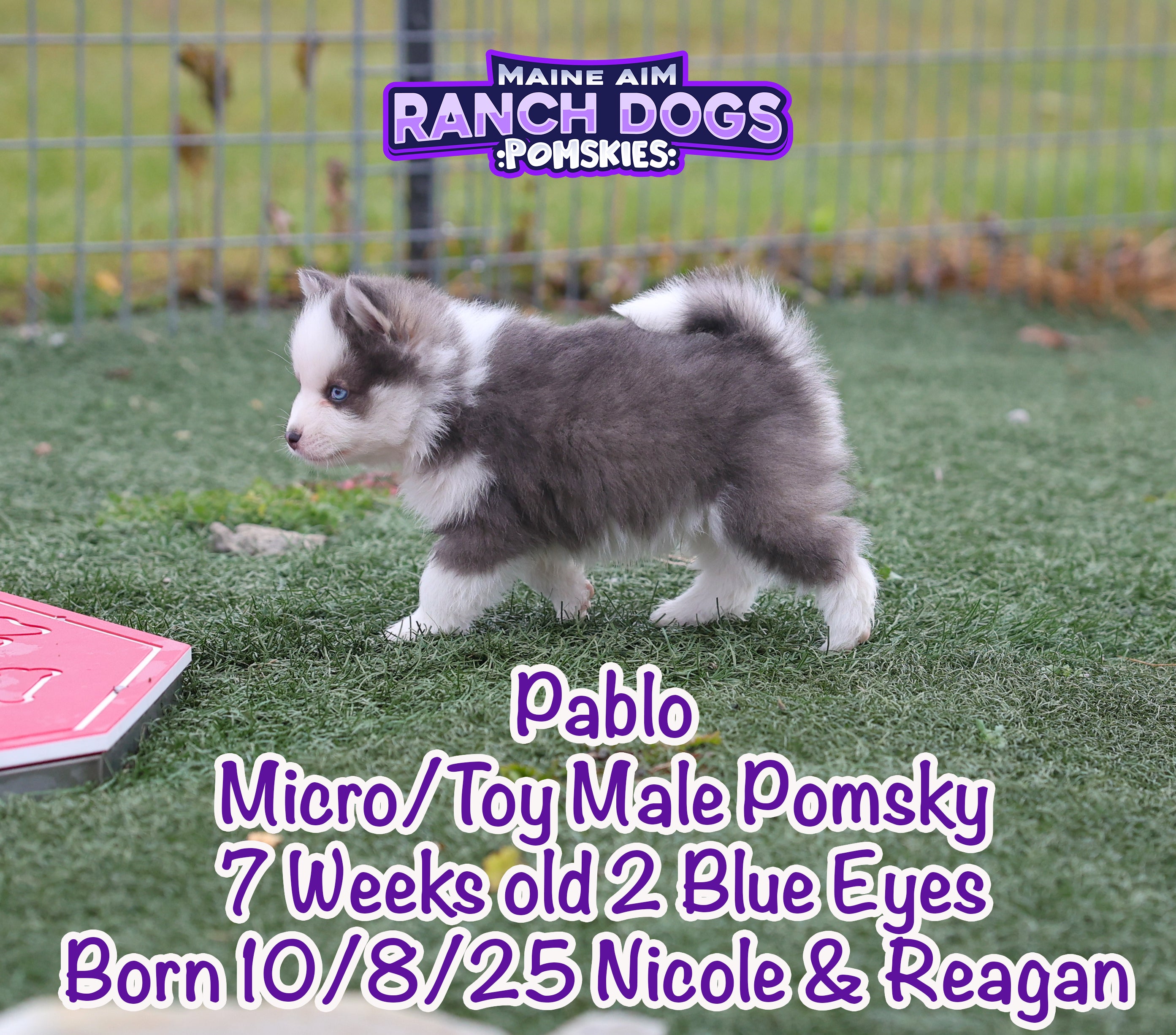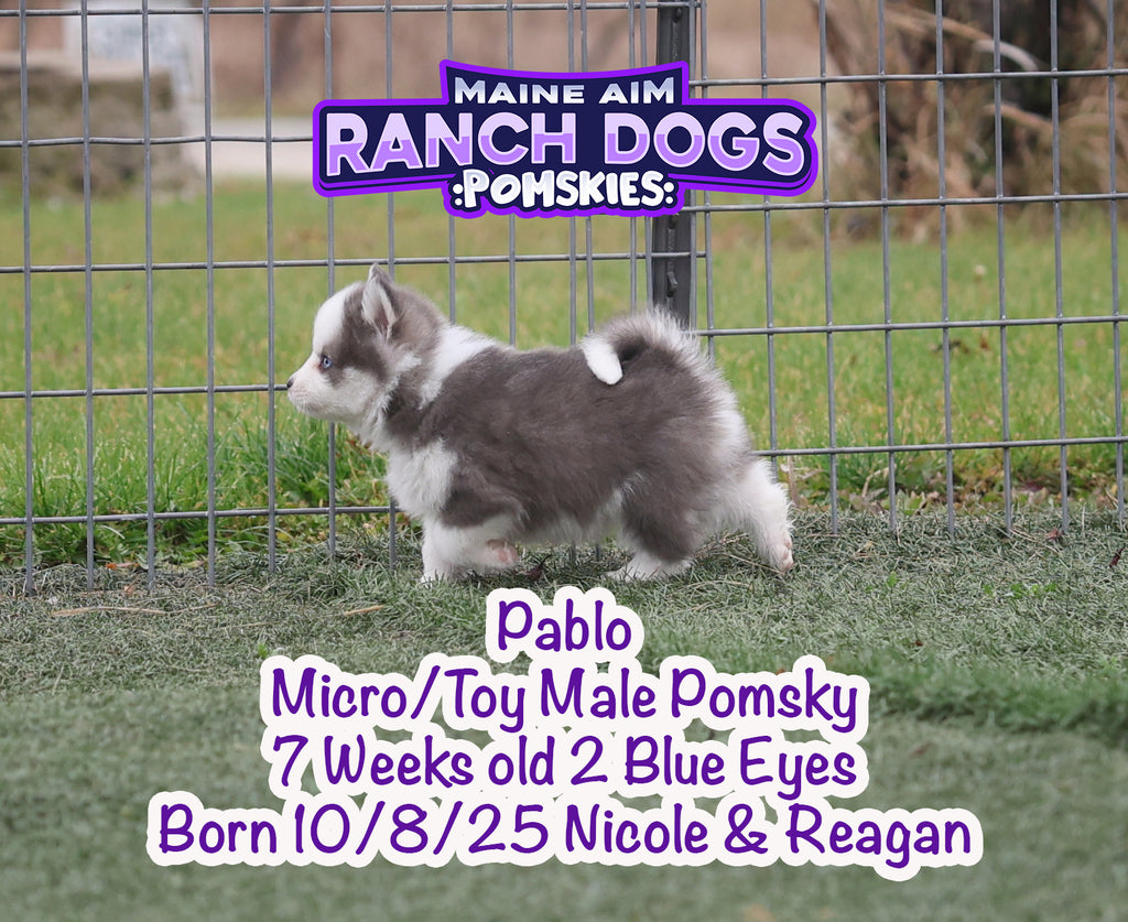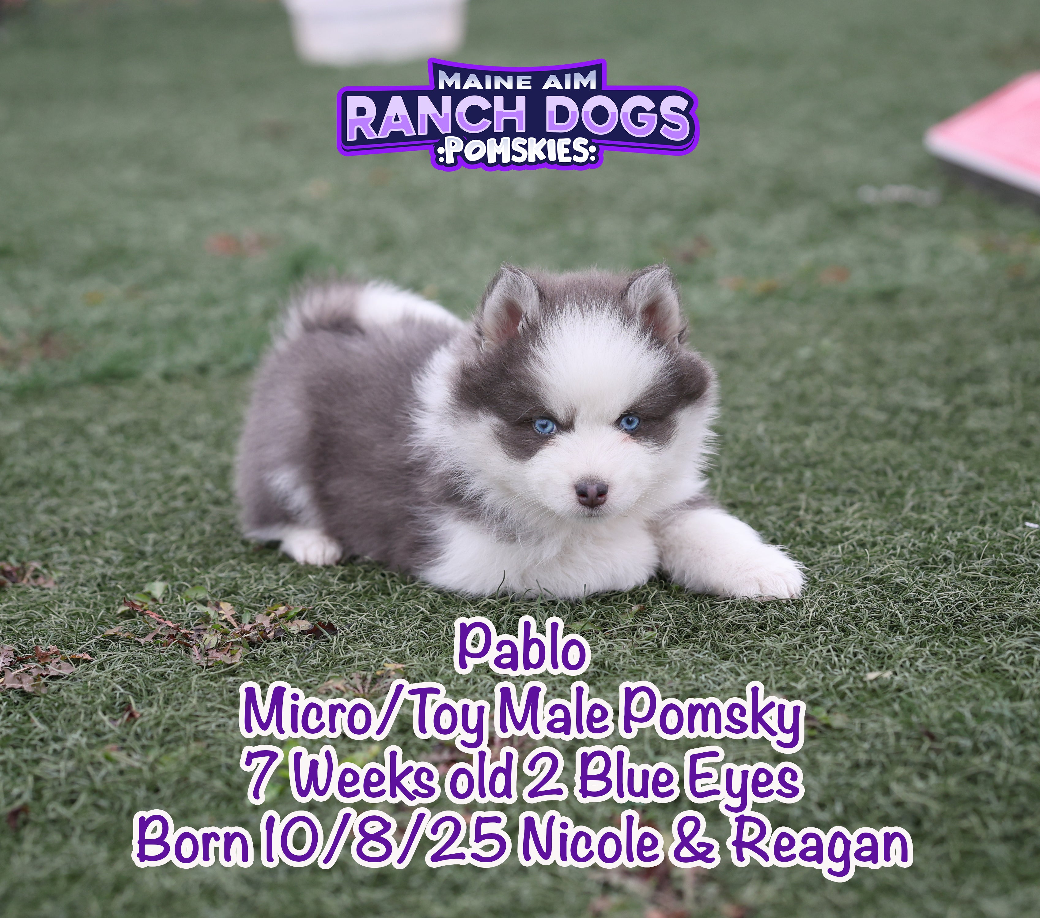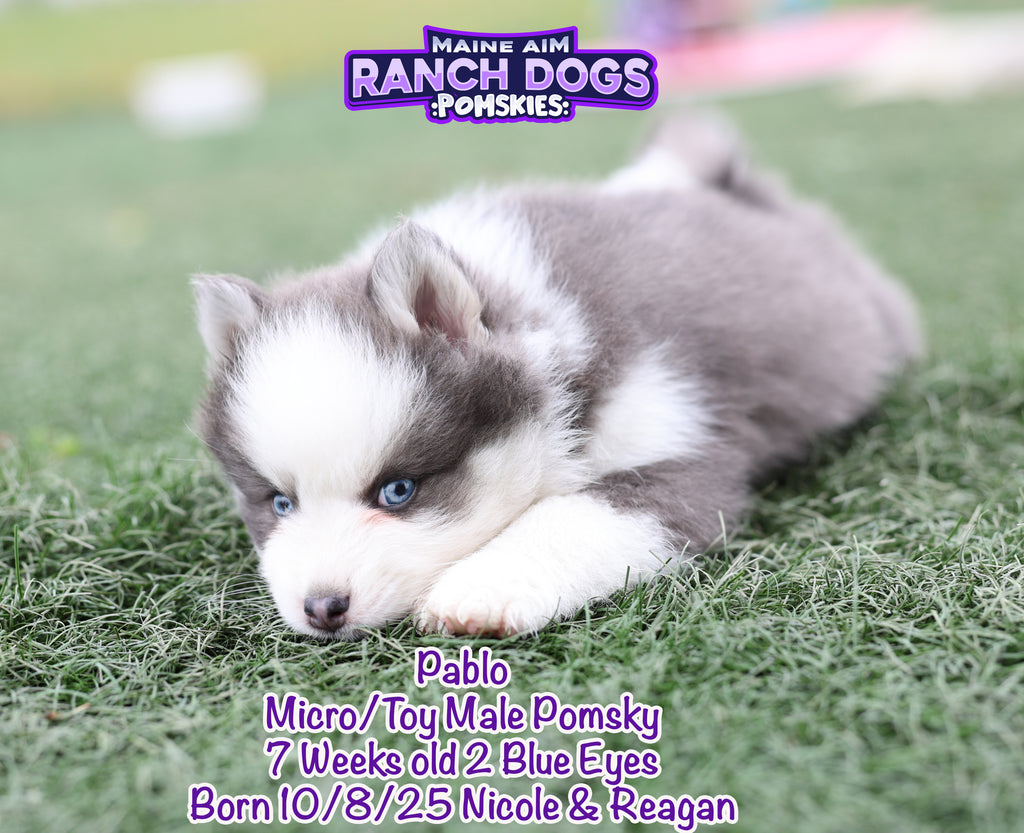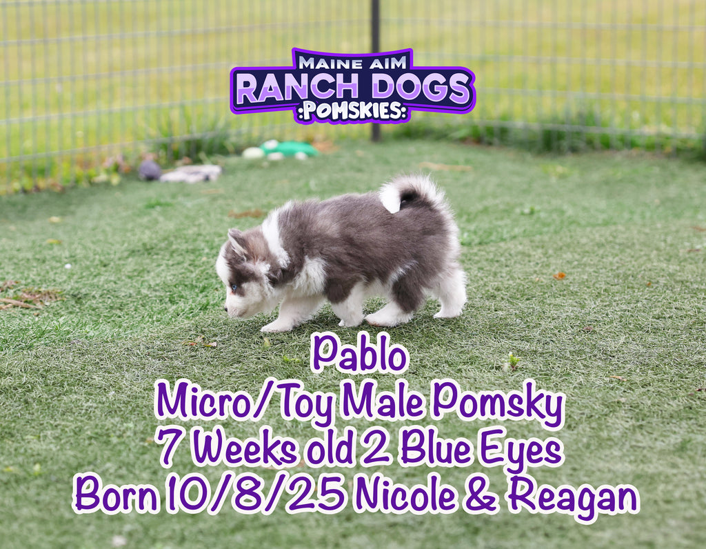 Pablo Blue & White F5 Male Pomsky out of Nicole & Reagan born 10/8/25 ready for new homes 12/3/2025