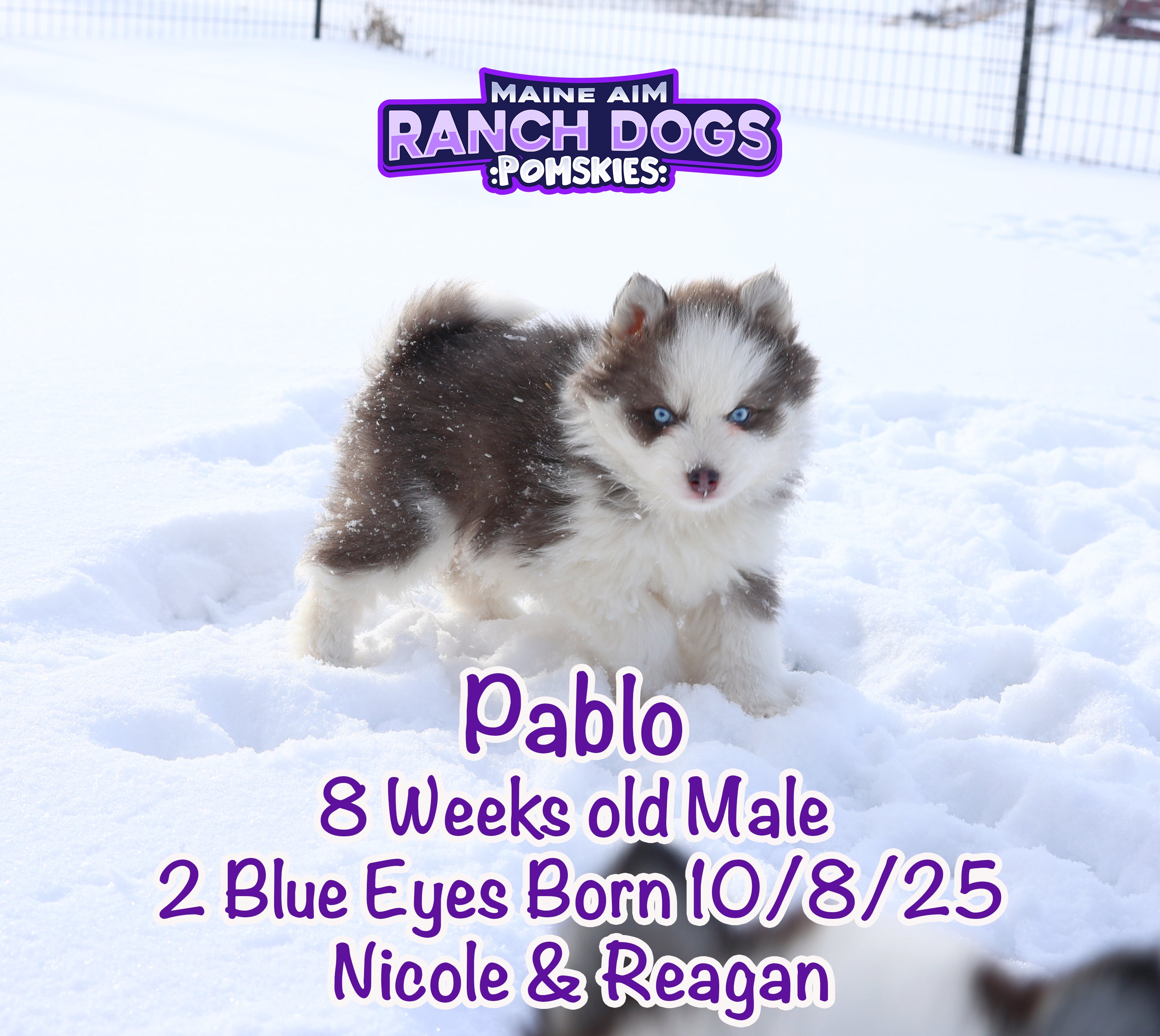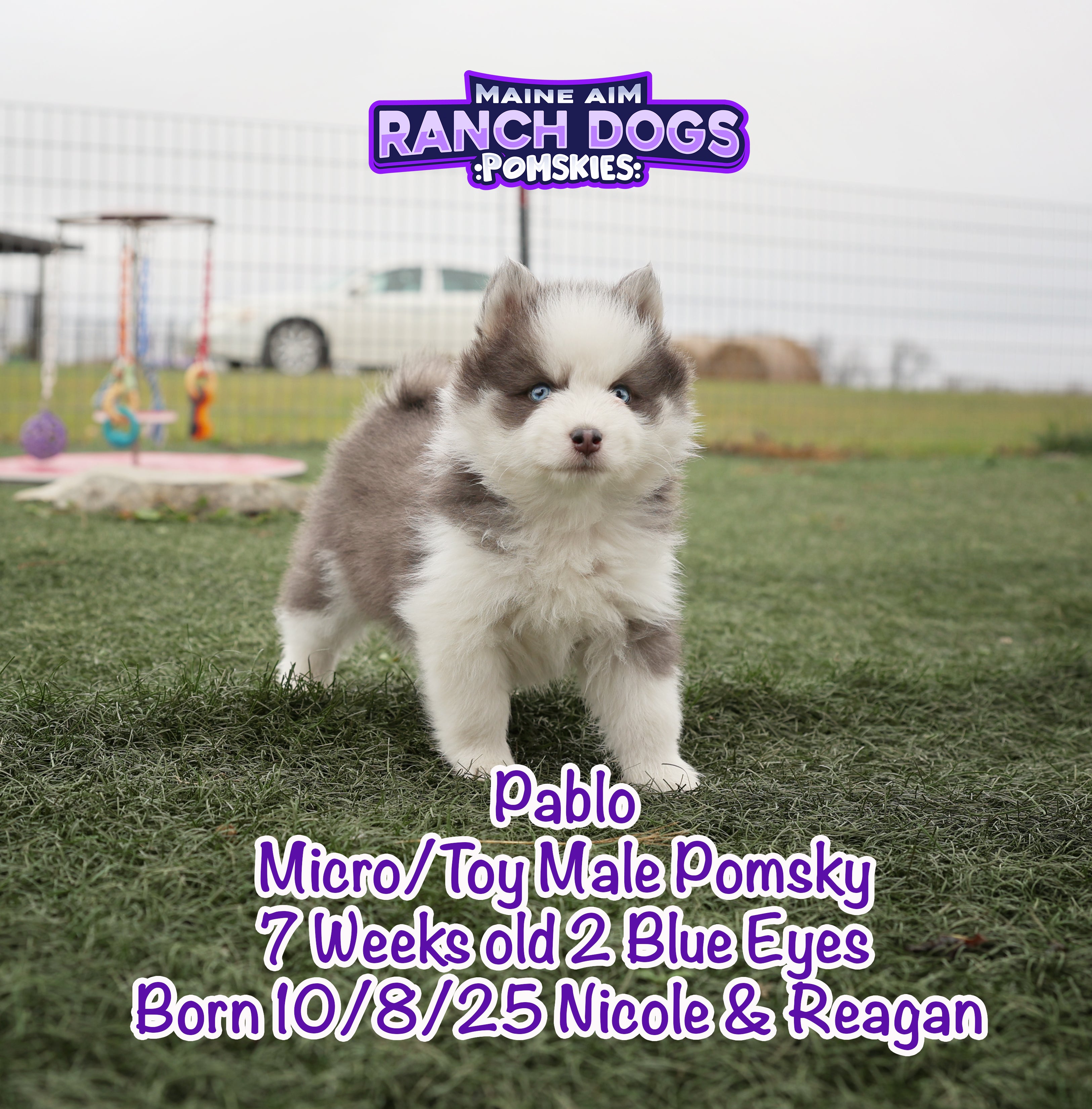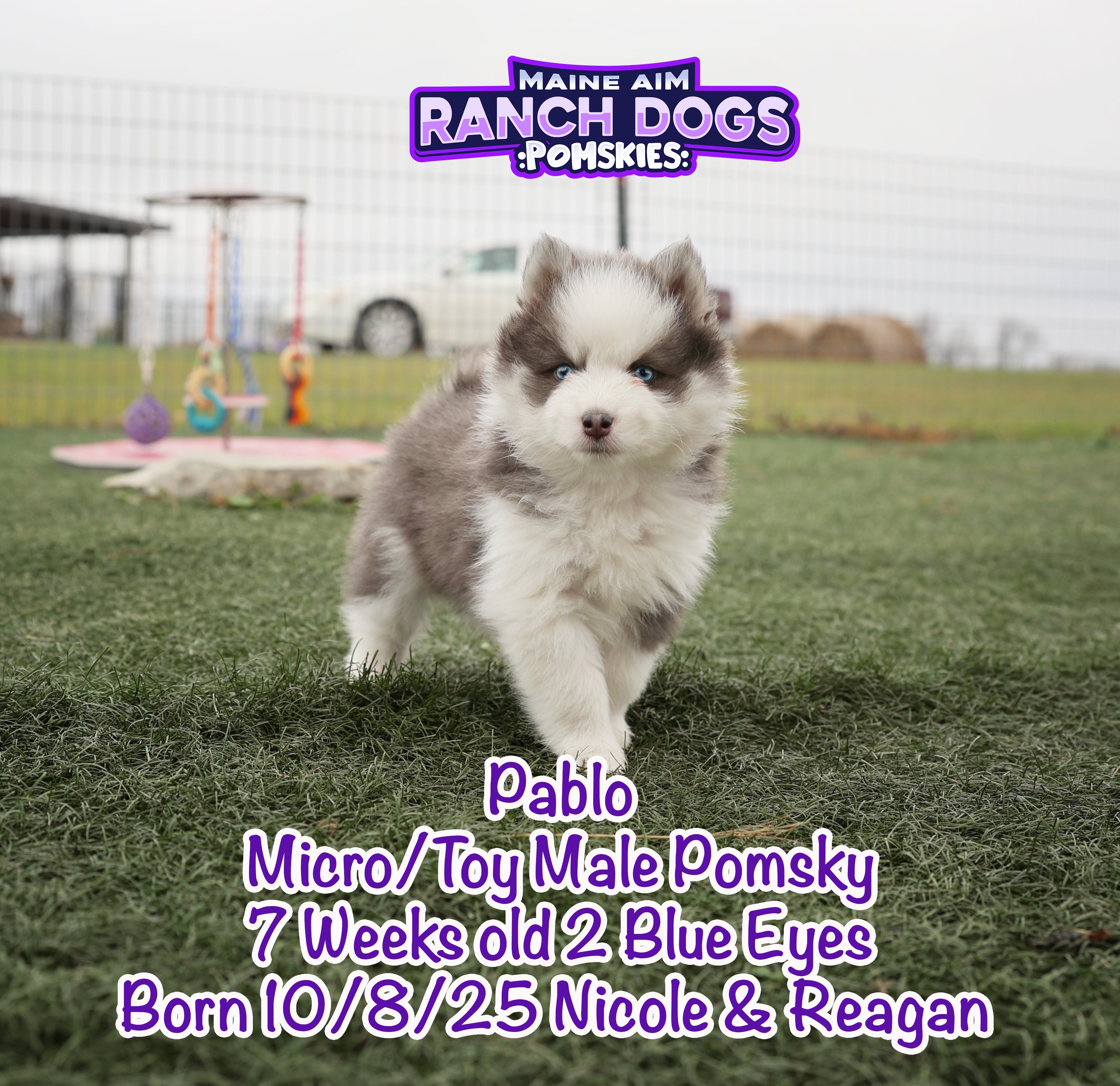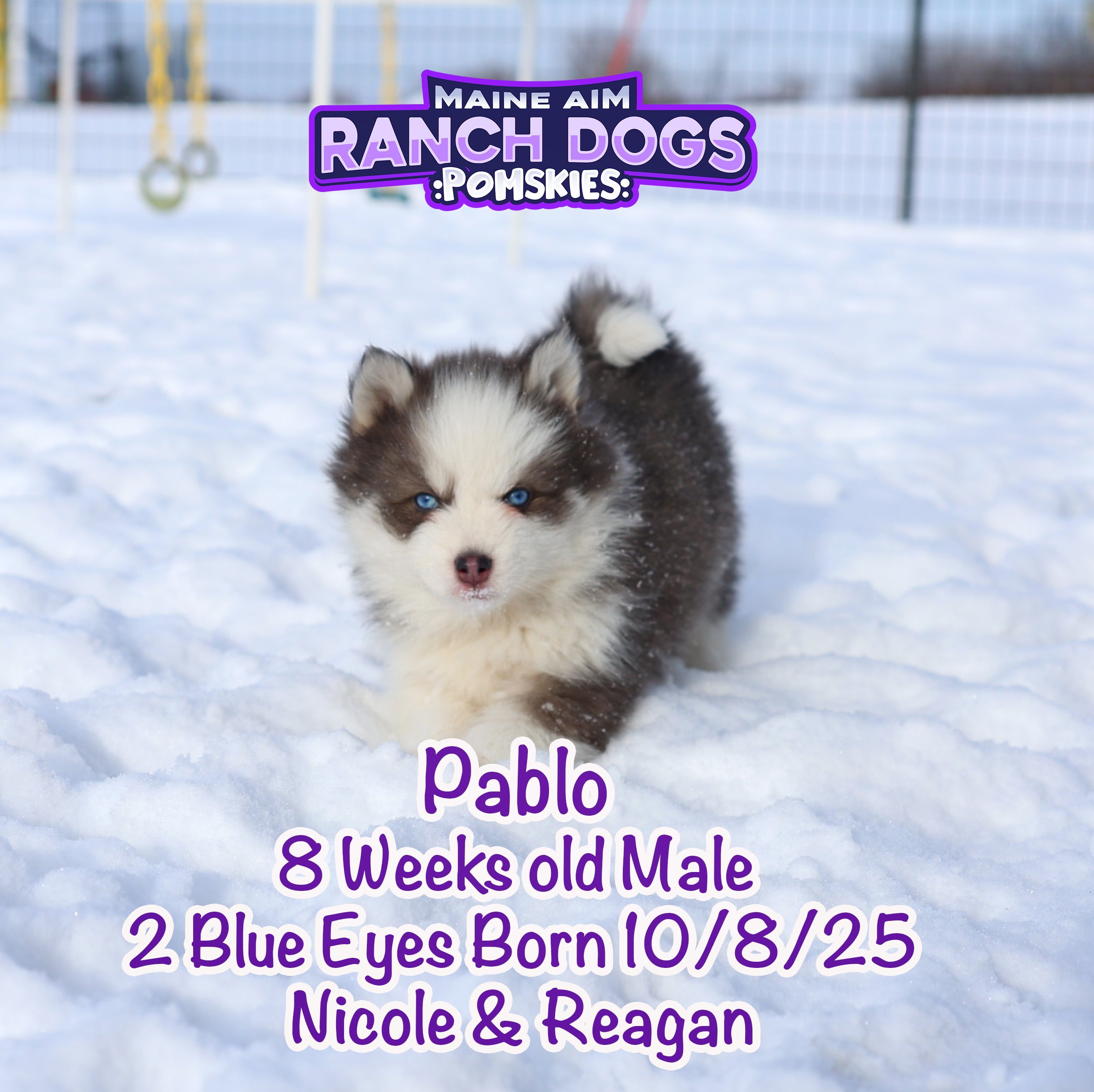 Pablo Blue & White F5 Male Pomsky out of Nicole & Reagan born 10/8/25 ready for new homes 12/3/2025