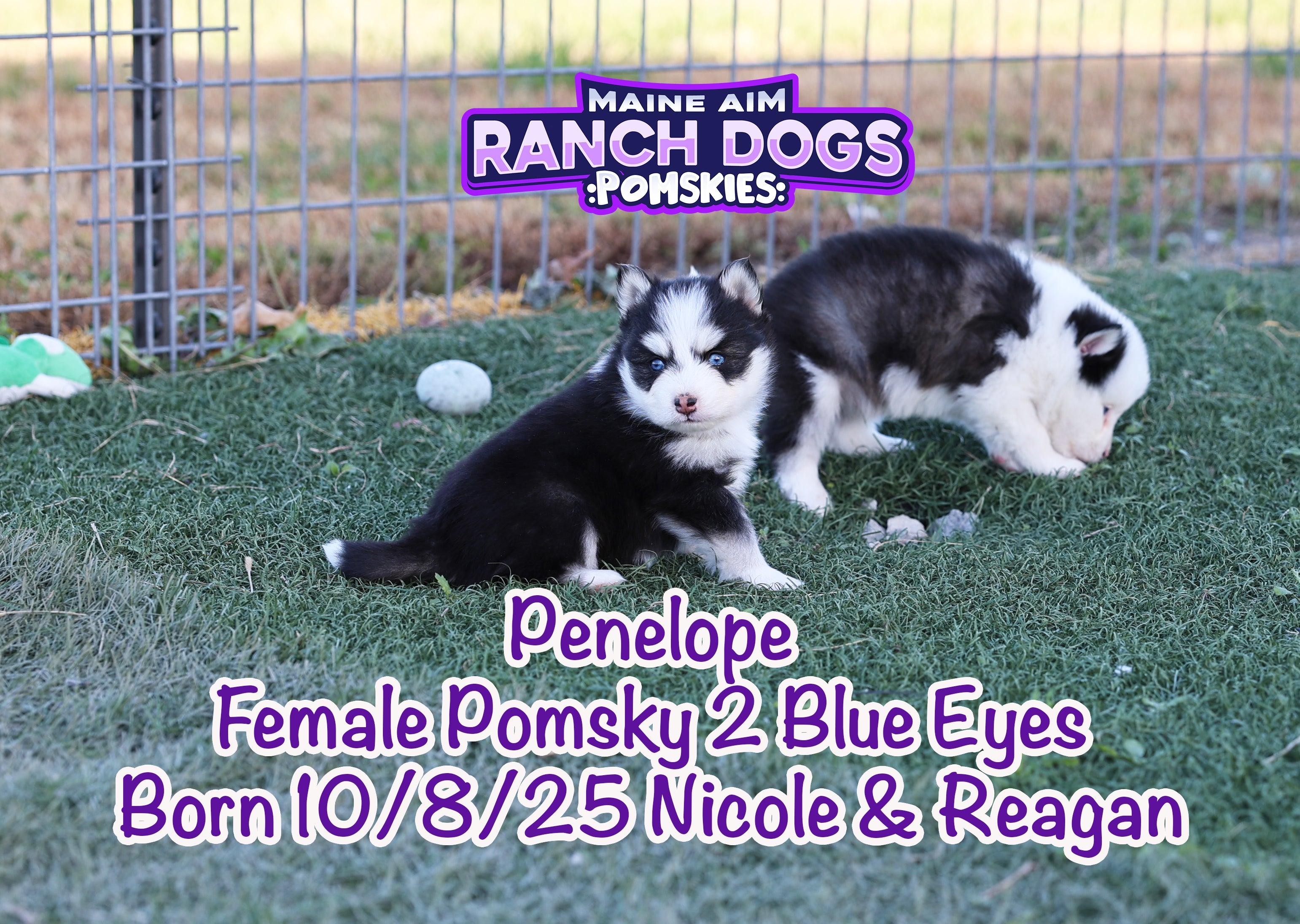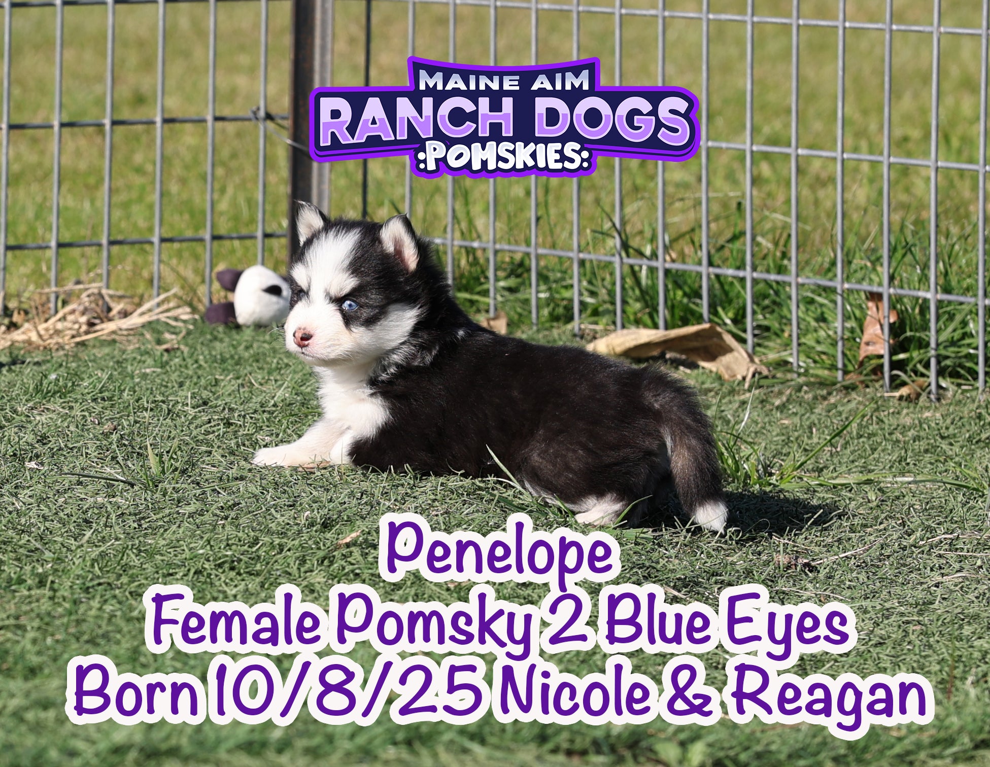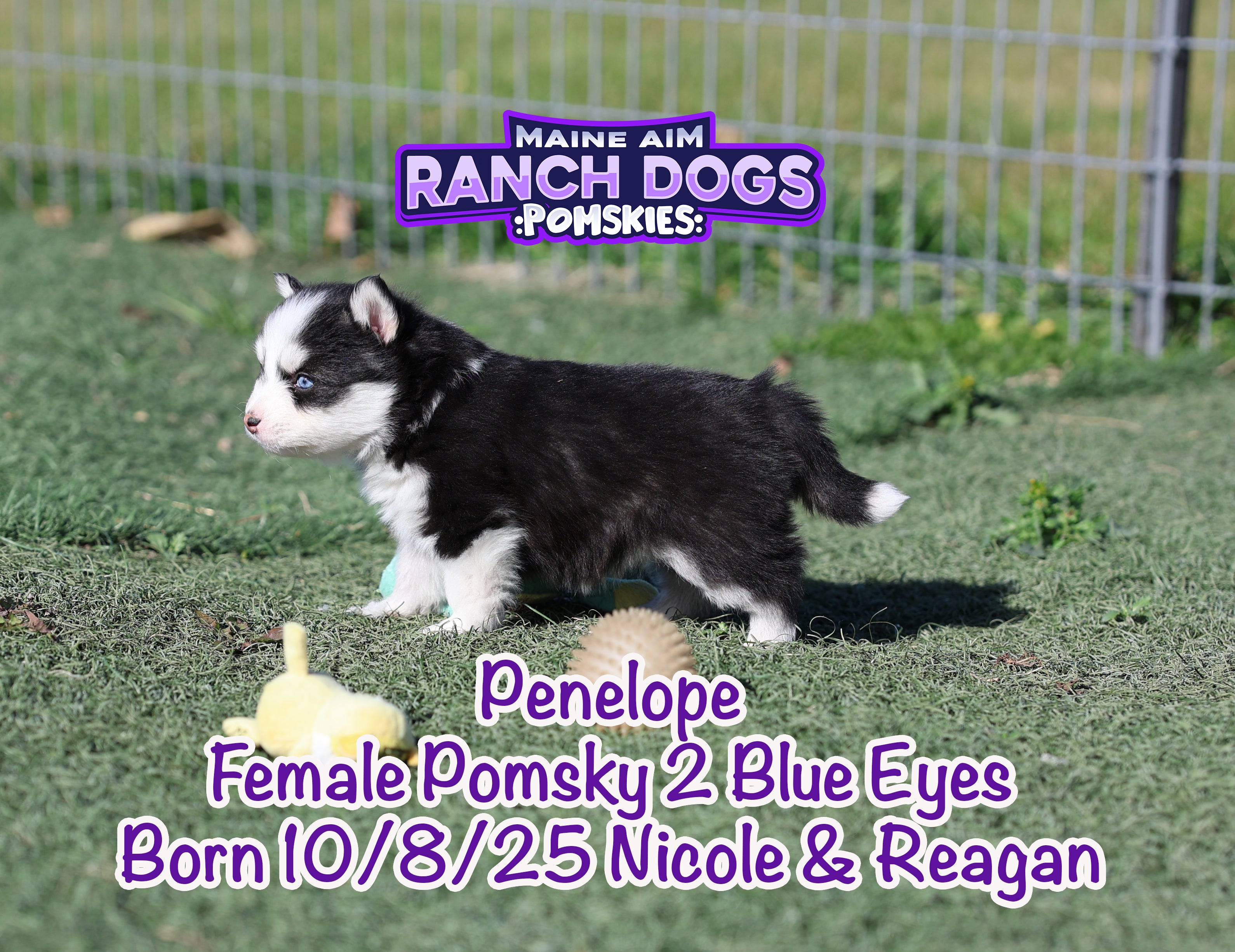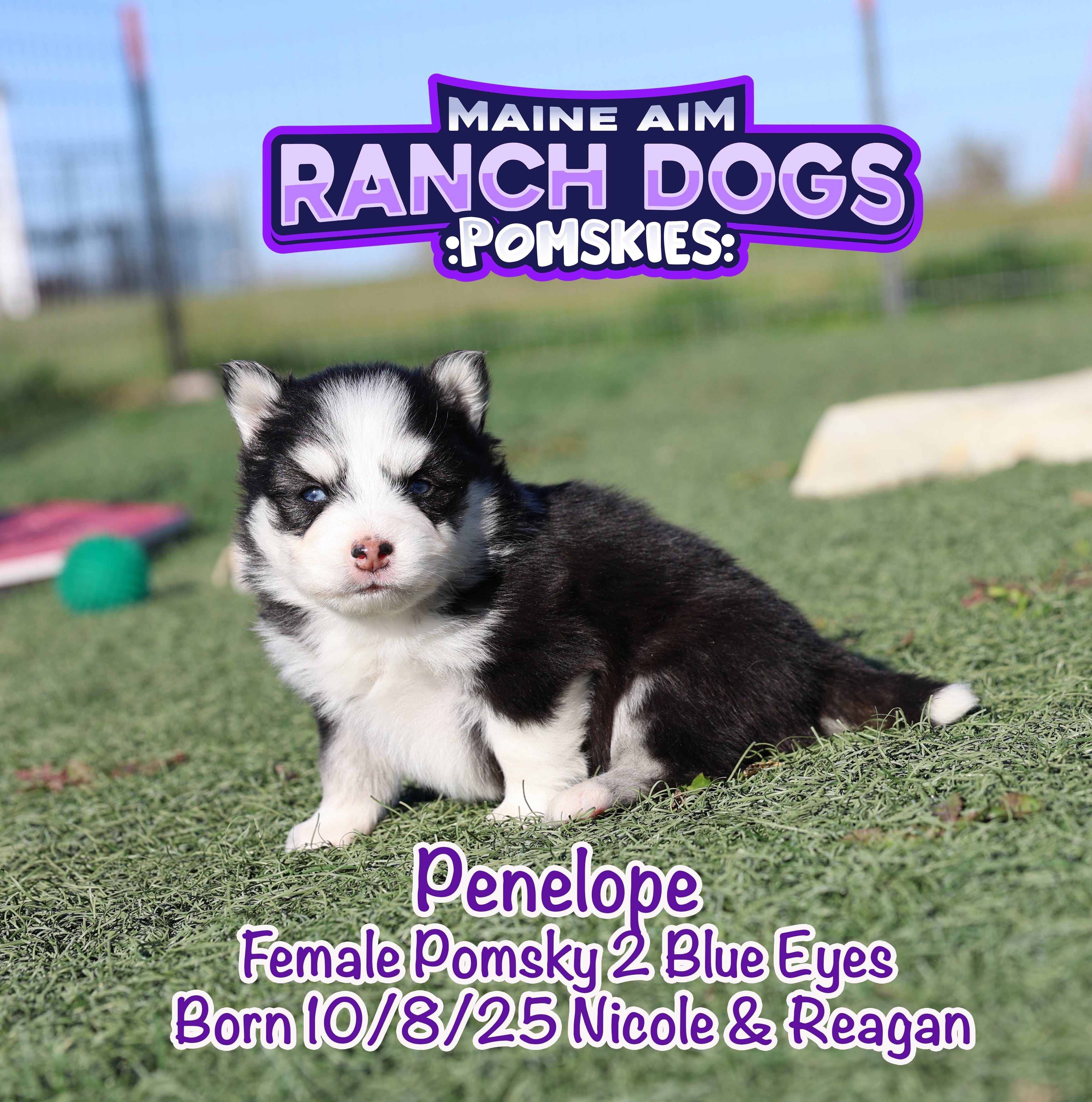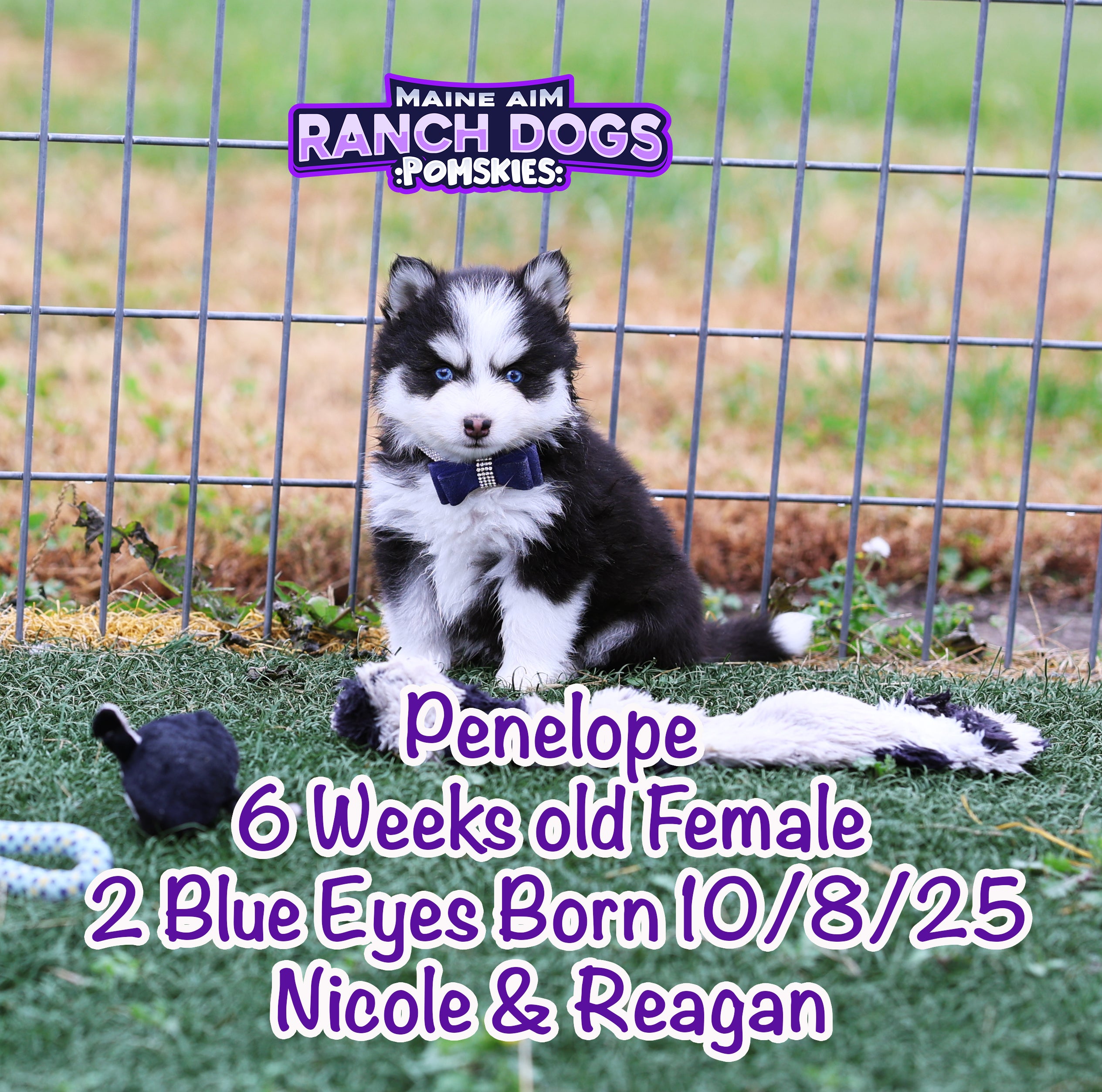Get ready — this little girl is the kind of puppy who stops you in your tracks and steals your heart before you even know what happened! Penelope is a stunning black and white Pomsky with a classic husky mask, two crystal blue eyes, and a presence that feels downright magical. 💙✨