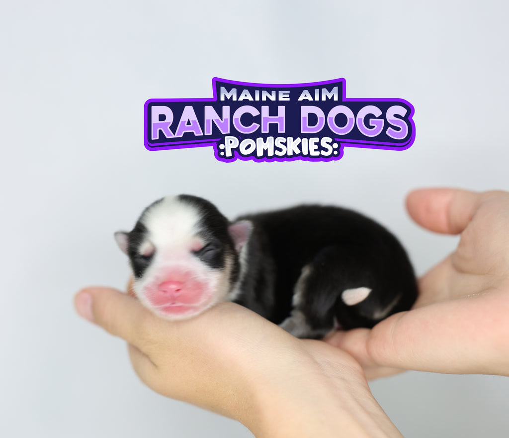 Porter Black & White F5 Male Pomsky out of Nicole & Reagan born 10/8/25 ready for new homes 12/3/2025