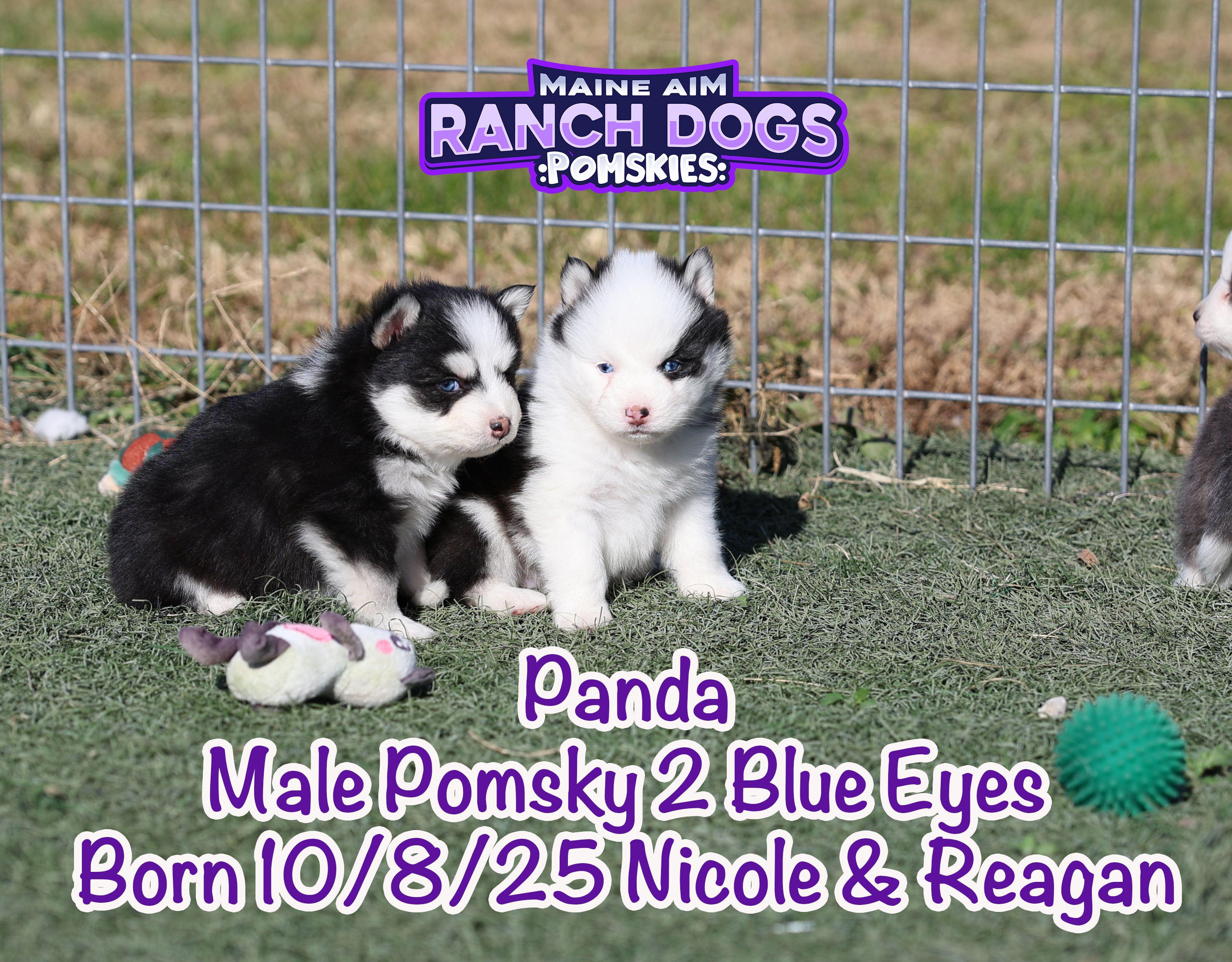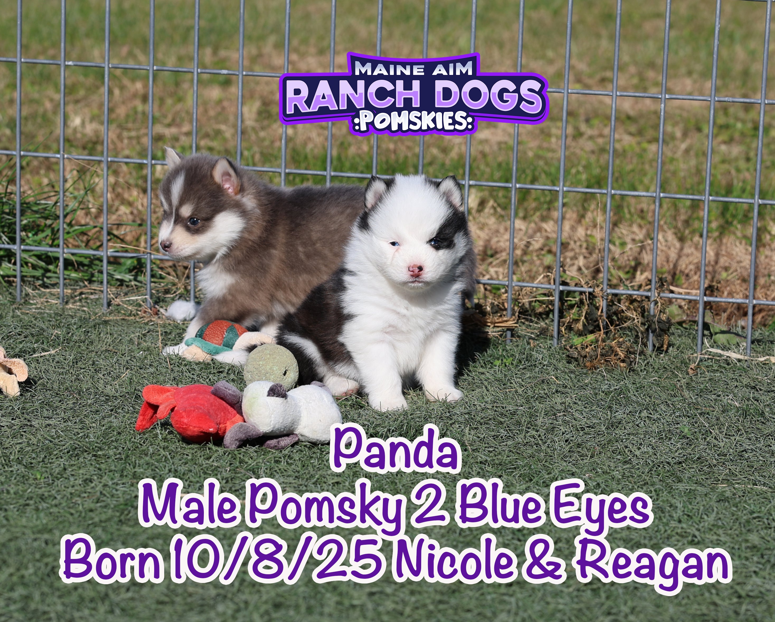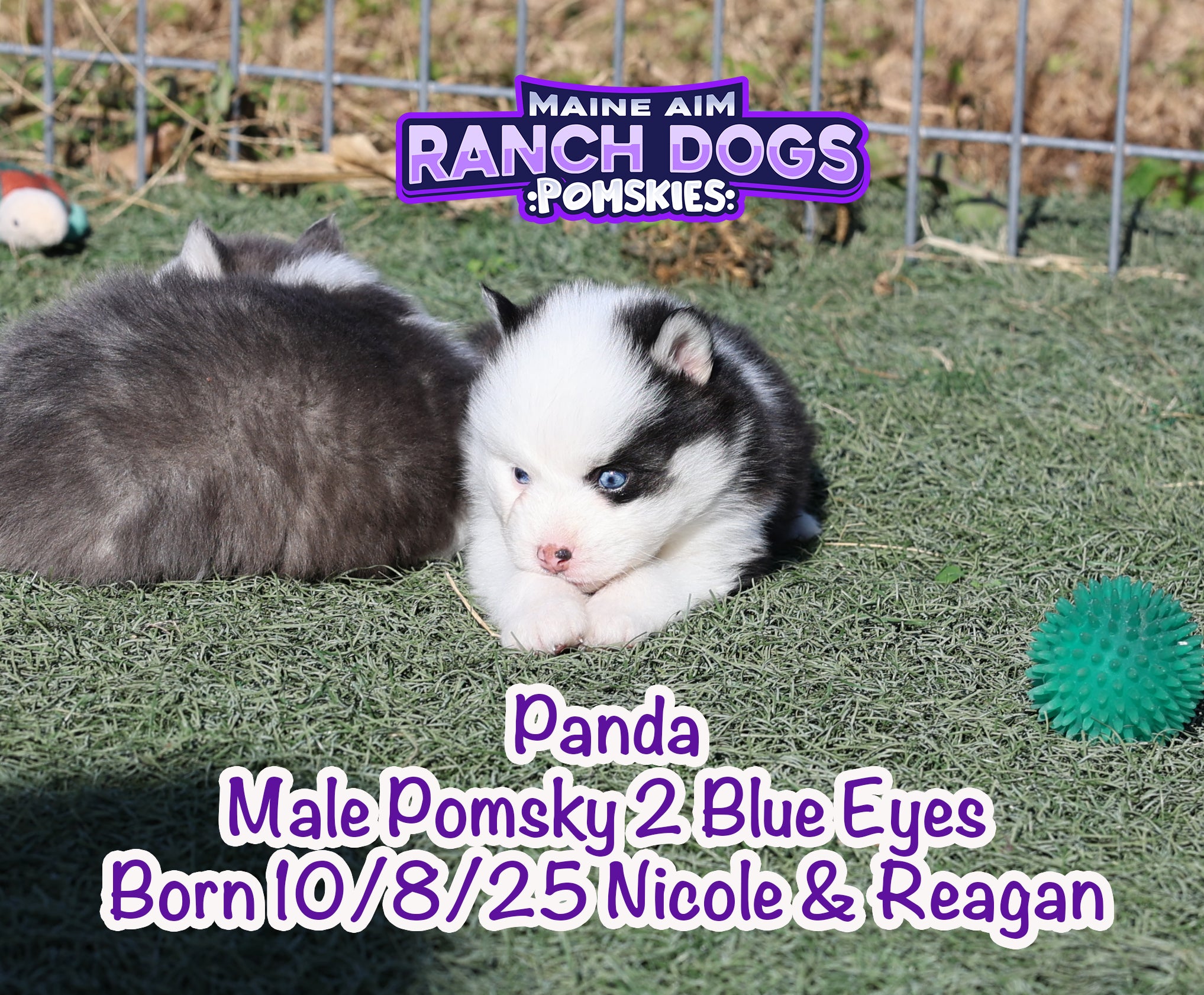 If there was ever a name that fit perfectly — it’s this little guy! šŸ–¤šŸ¤ Panda is a stunning black and white Pomsky with the most unique ā€œpanda bearā€ look — one side of his face pure white with a white eye patch, and the other side black over his eye. It’s like God painted him with a perfect little brushstroke of creativity! šŸŽØ He has two striking blue eyes, a soft fluffy coat, and that irresistible charm that melts your heart the moment you hold him. Panda is out of Miss Nicole and Reagan, and this first-time pairing has truly blessed us with some exceptional babies. We expect Panda to mature around 12 pounds as an adult — just the right size for snuggles and travel. What makes Panda even more special is his temperament — he’s quiet, cuddly, and full of love. The kind of puppy that just wants to be close, soak up affection, and bring peace to any home he’s in. 🩵 At Maine Aim Ranch Dogs, we pray over each of our pups and trust that God will guide them to the perfect family. Panda is such a gift, and we can’t wait to see where the Lord places him. šŸ™šŸ¼šŸ¾Ā