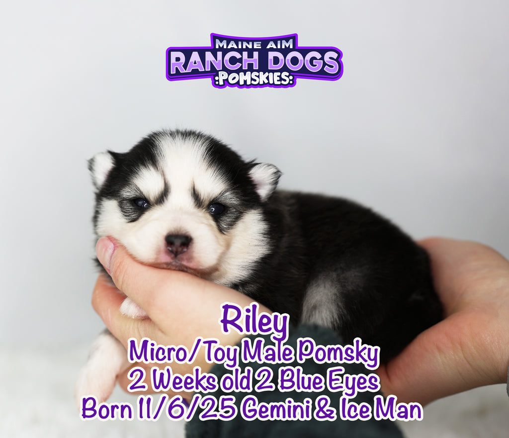 Riley Black & White Micro Toy Male Pomsky out of Gemini & Ice Man born 11/16/25 ready for new homes 1/11/2026