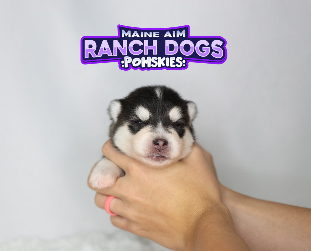 Miss Alaska is so beautiful just like her moma Becky she is made so correctly and fits the pomsky standards very well. Miss Alaska won Reserve Mini Female behind her sister Sierra which won Best of show at Pomsky Showdown at 5 months old in 2023. Following in their mother Becky's foot steps, Becky won Pomskyfest in 2018 at the age of 5 months old. Alaska's dad Icon also won Best of Show Dog at Pomsky Showdown in 2023. Alaska is weighing in at 25lbs and we have paired her with smaller males to provide a range from Micros to Mini pomskies is what we are planning on seeing her produce. Miss Alaska is full sisters to Sierra and they are like two peas in a pod! We are excited to see the babies these two girls produce.