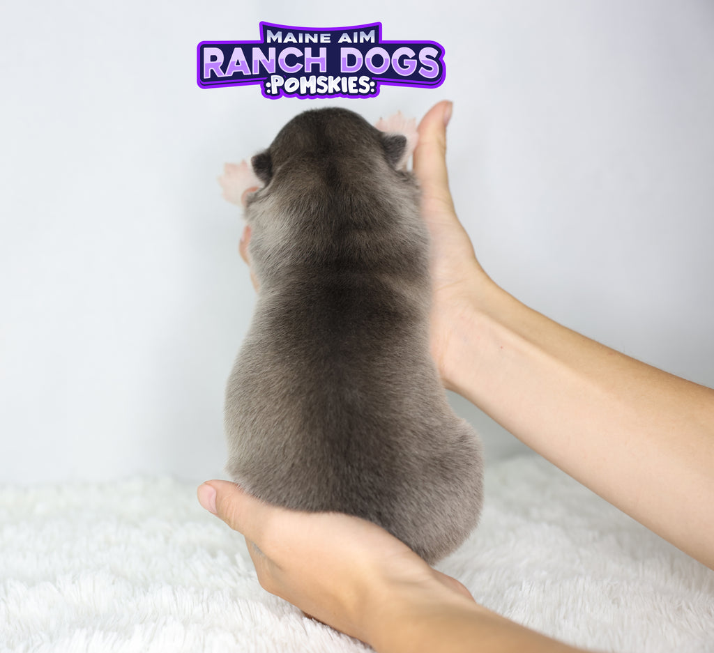 Check out this amazing F4 Pomsky boy named Reagan. He is out of our sweet little Sassy which is out of Lucy and Steele. His dad is Ice Man out of Cricket and Fox. We are so excited to see the babies out of this great pomsky and his future looks bright!